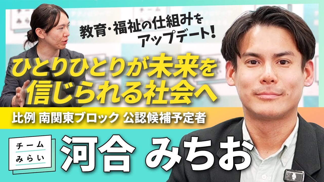 一人ひとりが自分らしく生きることができる社会になるよう、仕組みから変えていきたいと考え、この度の挑戦をさせていただきます。未来が明るいと思えるように、精一杯尽力してまいります。 このような機会をいただけているのは前回の選挙よりチームみらいを応援してくださっているみなさまのおかげです。今回の選挙でも、全力を尽くします。